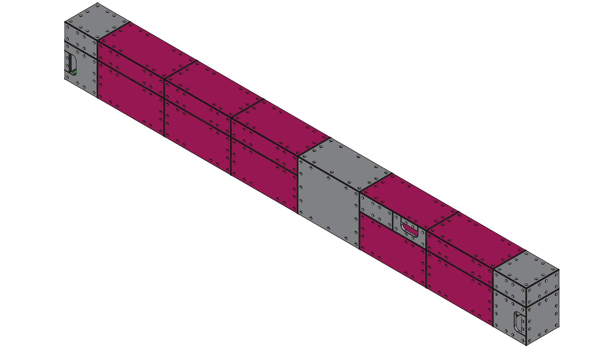 Die Ecken und Kanten benötigen M3-Muttern SW5,5 zum einpressen. Die Öffnungen für die Muttern sind leicht untermaßig. Hierdurch bleibt die Mutter eingeklemmt, muss aber mit etwas Kraft eingepresst werden.